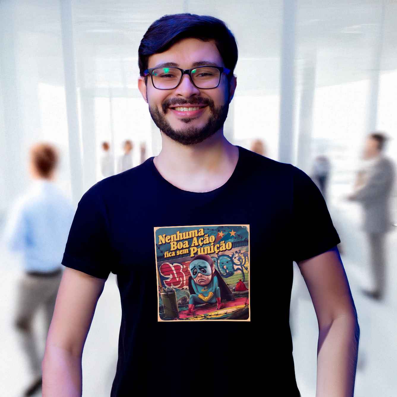 Garanta já a sua camiseta e leve a diversão para o seu armário. Seja o empregado mais bem vestido e cheio de estilo da firma!