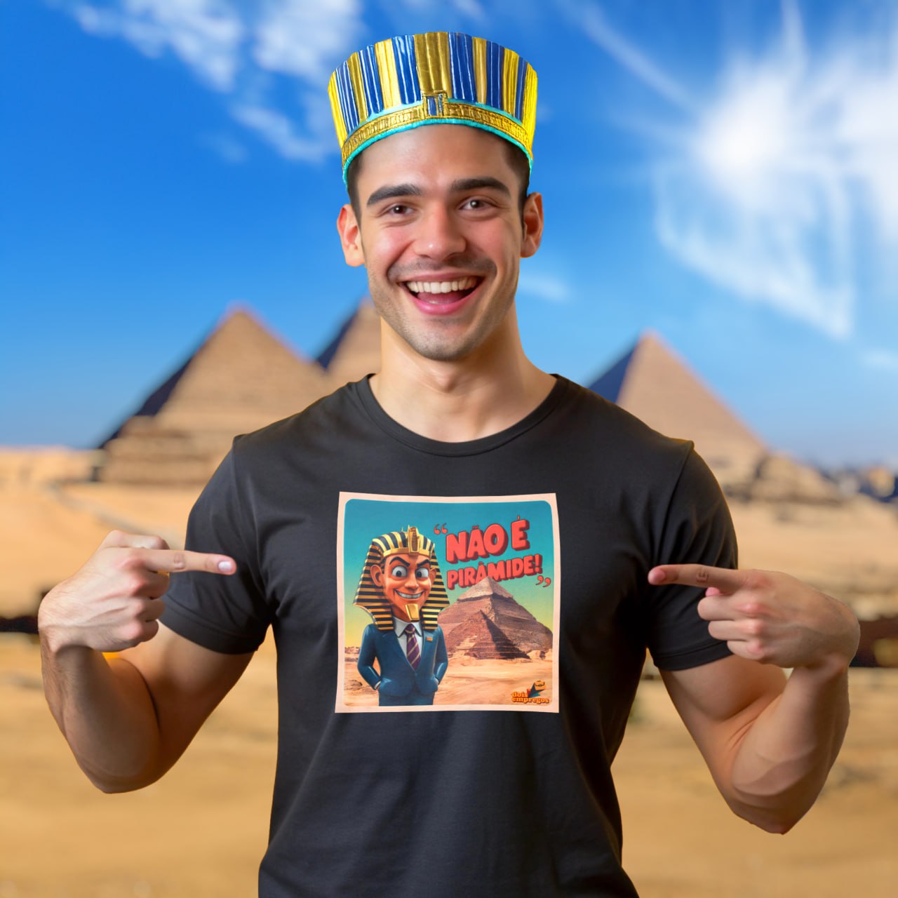 Garanta já a sua camiseta e leve a diversão do “Não é Pirâmide!” para o seu armário. Seja o empregado mais bem vestido e cheio de estilo da firma!